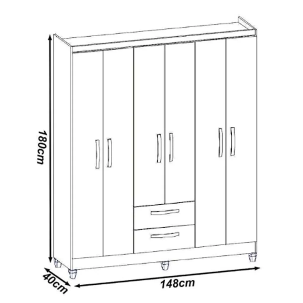 O Guarda Roupa Fortaleza é perfeito para casais que precisam de muito espaço para organizar suas roupas. Com 6 portas e 2 gavetas espaçosas, você terá espaço de sobra para guardar todas as suas roupas, sapatos e acessórios.