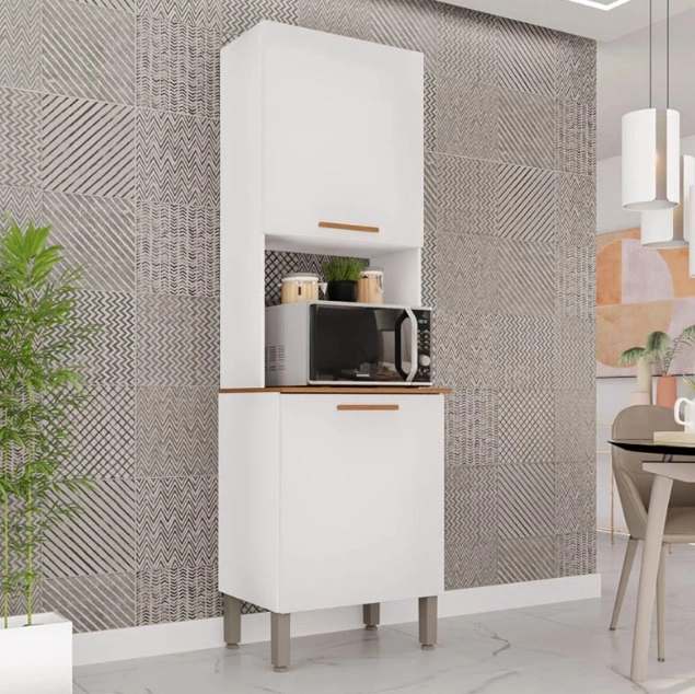 O Paneleiro New Valencia 2 Portas Salleto é uma peça essencial para a organização da sua cozinha, oferecendo um design moderno de torre quente, ideal para acomodar micro-ondas ou forno elétrico em um nicho dedicado. Fabricado com materiais de alta qualidade, ele conta com duas portas para armazenamento interno, prateleiras e pés reguláveis, combinando funcionalidade e estilo para otimizar o espaço e complementar a decoração do ambiente.