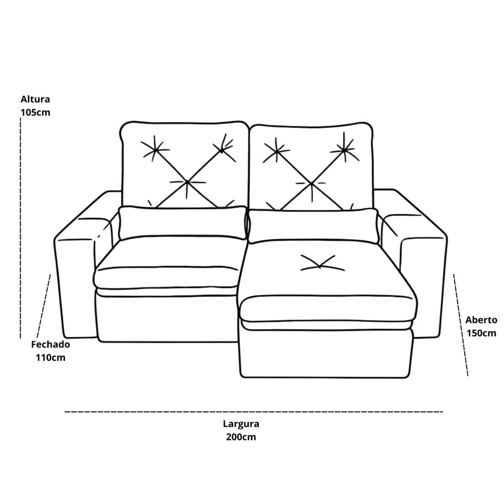 | Assento | Retrátil, molas espirais, percintas elásticas, espuma 28 e Pillow Top |