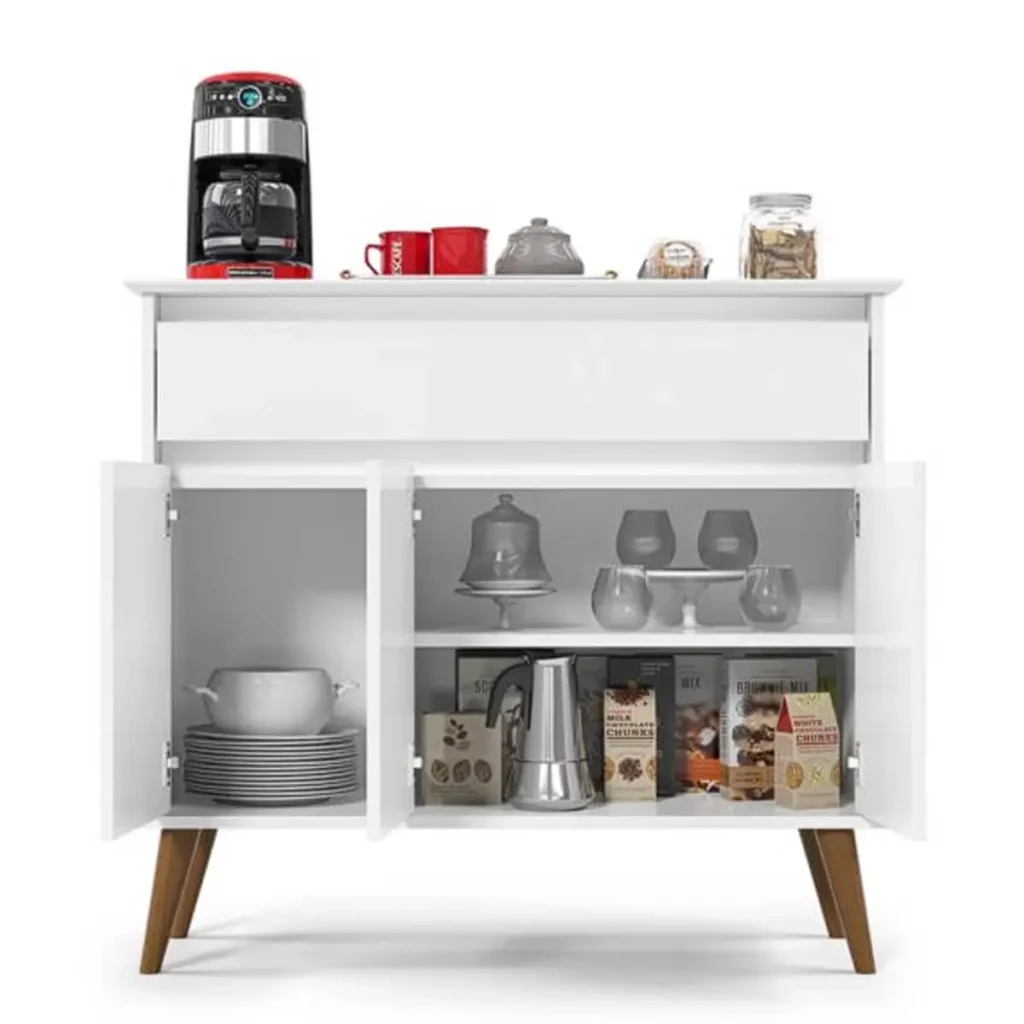 O Aparador Buffet Zeus 3 Portas 1 Gaveta EJ é perfeito para armazenar louças, utensílios de jantar, toalhas de mesa e muito mais. Seus convidados ficarão impressionados com a aparência elegante deste móvel, e você pode surpreendê-los ainda mais com o conteúdo dentro dele!