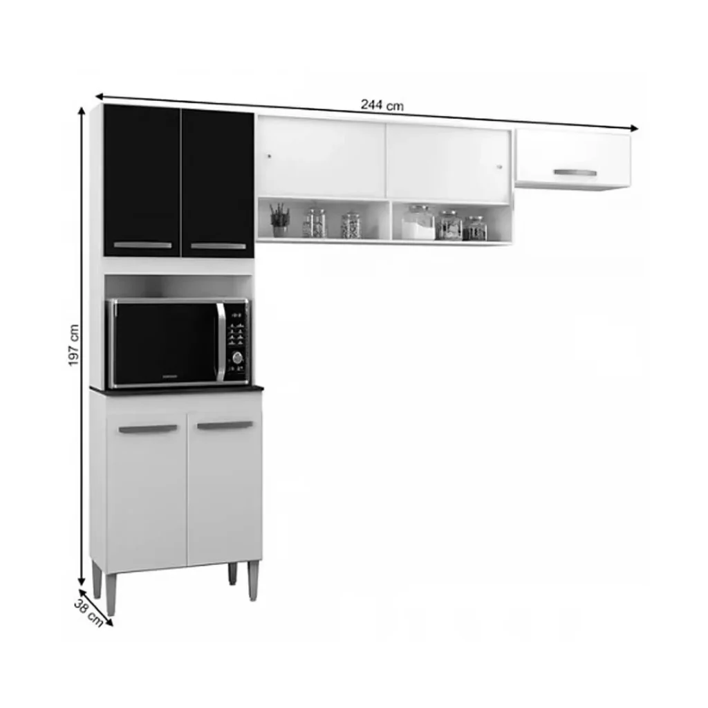 Com esse armário, você vai ter espaço de sobra para armazenar tudo o que precisa na cozinha, sem deixar bagunça à vista. As sete portas oferecem amplo espaço interno, e as prateleiras vão te ajudar a manter tudo no lugar, facilitando o seu dia a dia na cozinha.