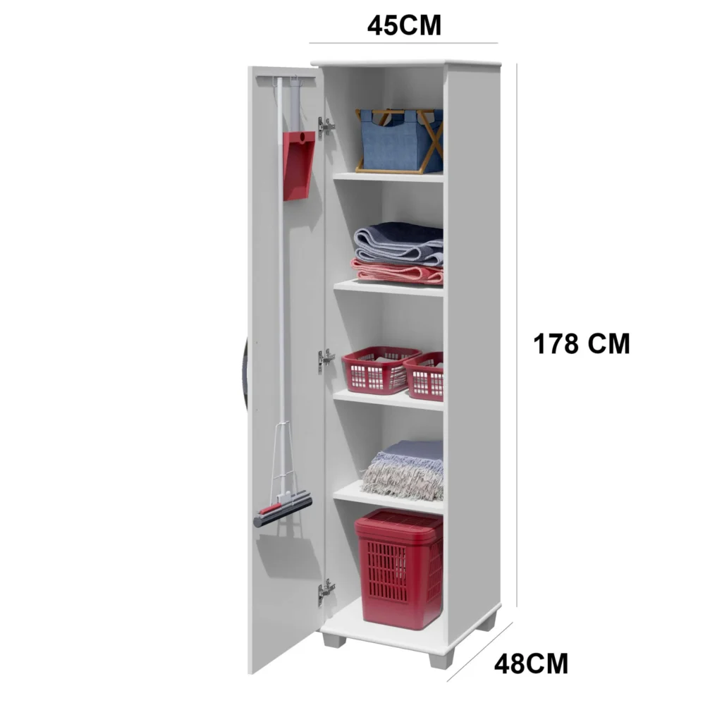 Um armário multiuso é mais que um item indispensável para organização, é um móvel que também faz parte da decoração do ambiente. O Armário Multiuso Cuiabá 1 Porta 4 Prateleiras Arte Móveis é uma ótima opção para guardar os objetos de sua área de serviço com facilidade.