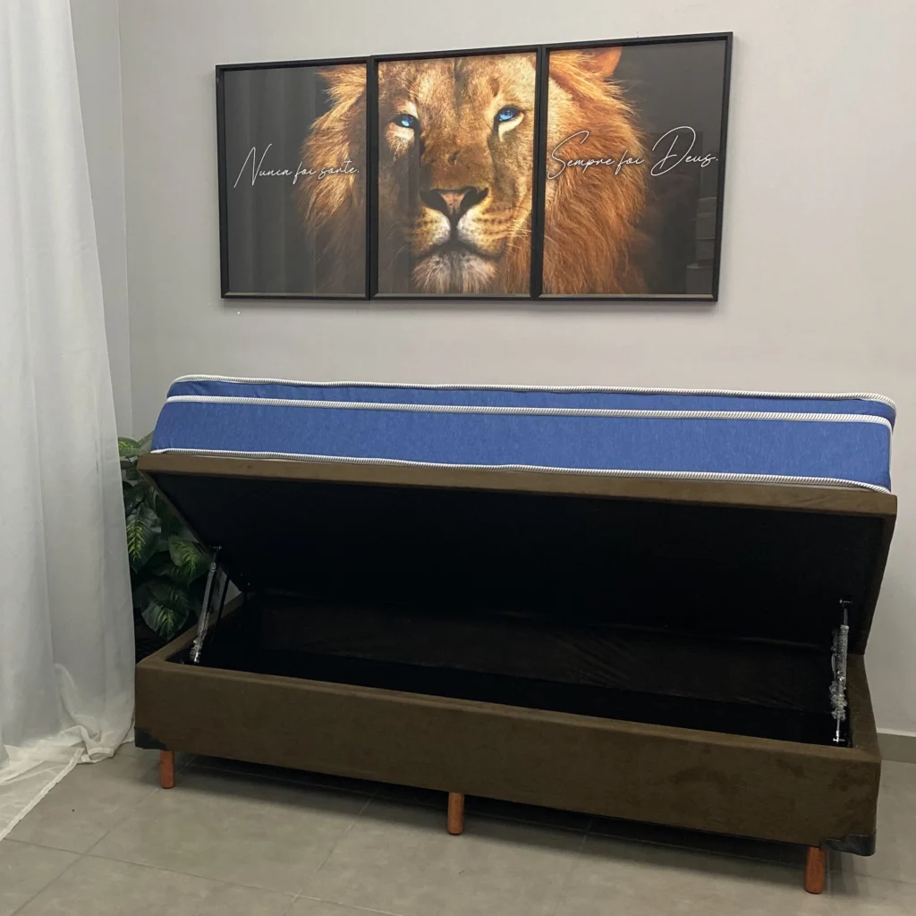 Modelo Base Baú em Corino com Colchão London Solteiro