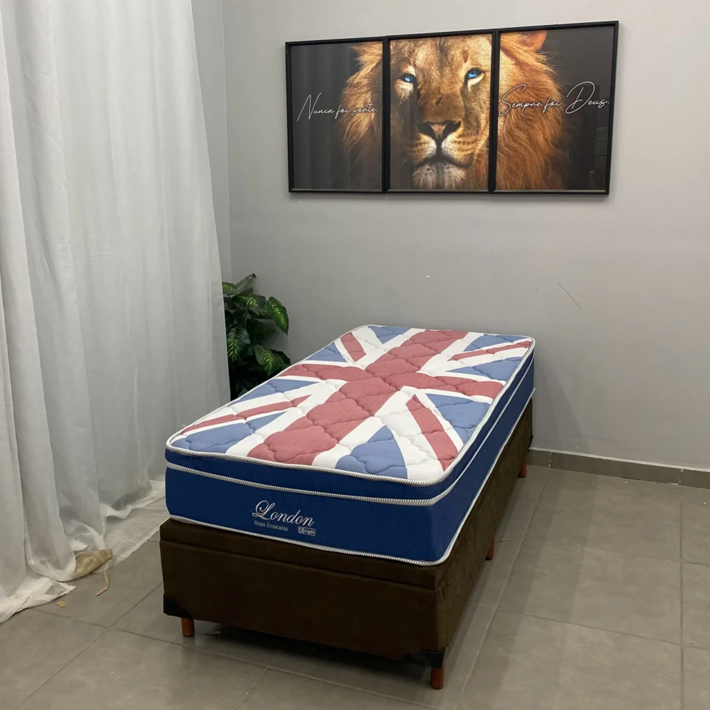 Catálogo / Cama de Solteiro / Cama e Colchão / Base Baú em Corino com Colchão London Solteiro com Molas Superlastic 63x188x88cm Anjos