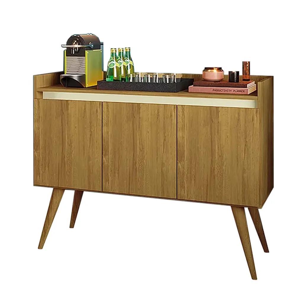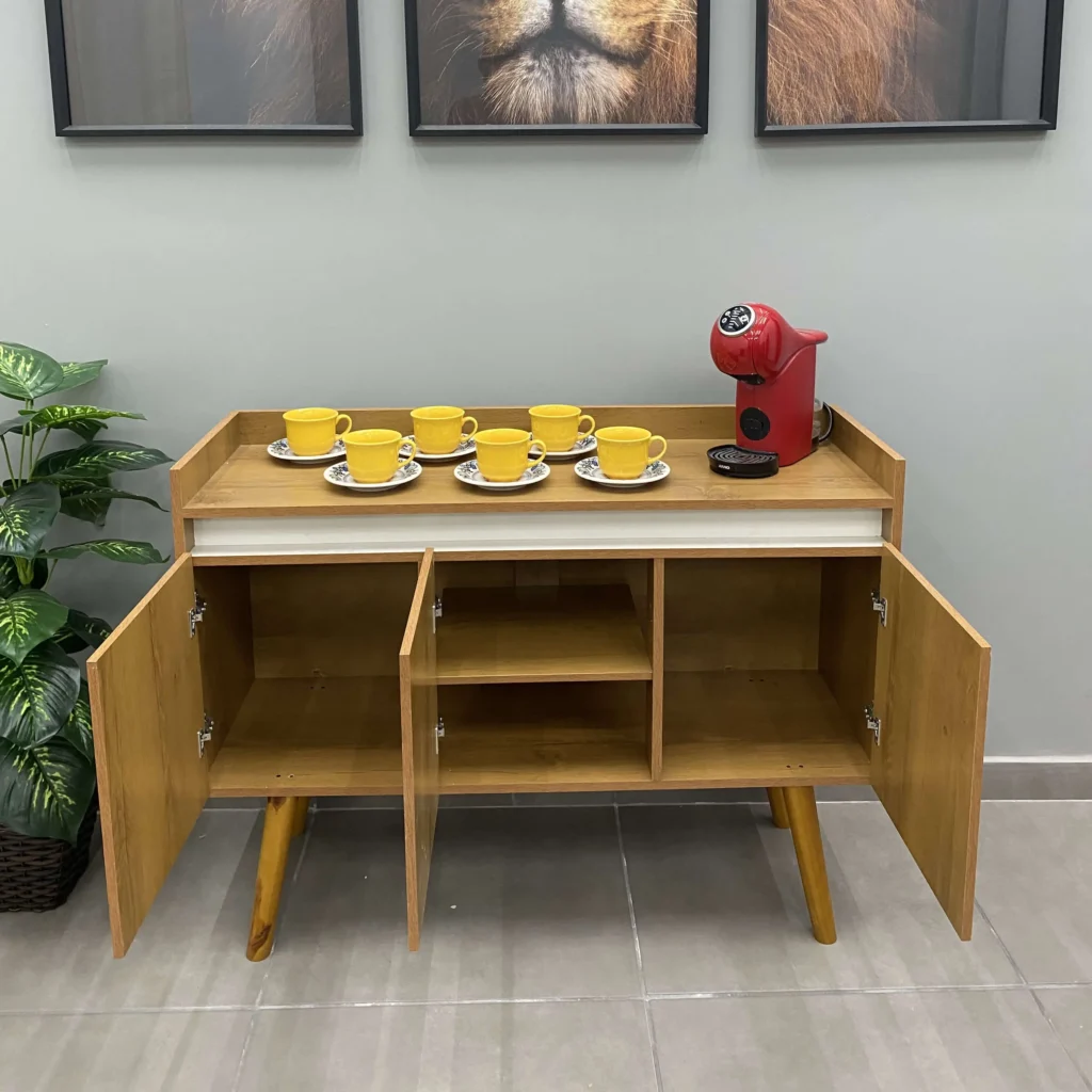 Feito com materiais de alta qualidade, este buffet é resistente e durável, garantindo que você desfrute da sua beleza por muito tempo. As portas oferecem muito espaço para guardar todos os seus pertences, mantendo tudo organizado e livre de bagunça.