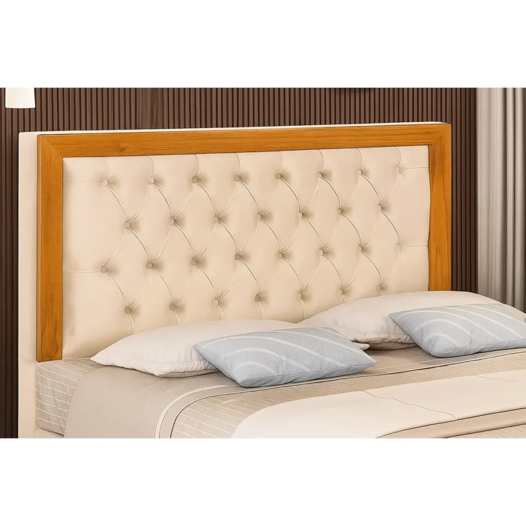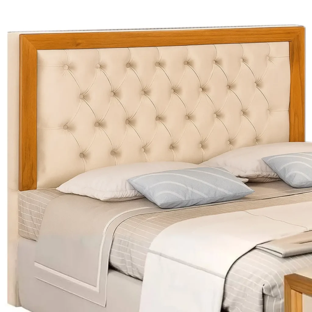 | Material | Madeira Eucalipto Reflorestada, Acabamento da moldura trabalhado na Madeira Maciça, Estofada com espuma de poliuretano D23, Botões encapados na mesma cor do revestimento |