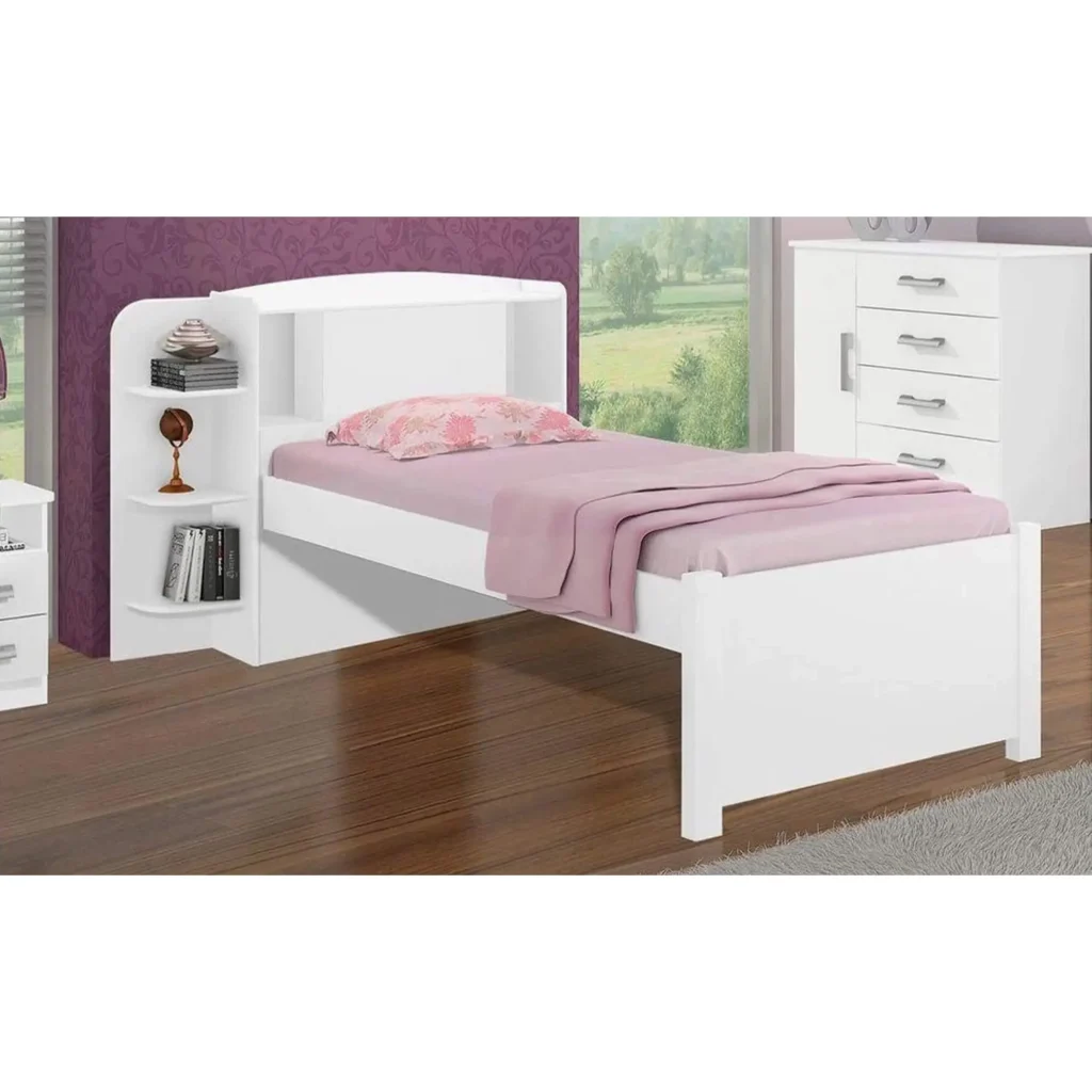 A Cama Milenio Solteiro 100% MDF Sem Cama Auxiliar, é fabricada em 100% MDF, possui cantoneira lateral com 03 prateleiras que podem ser montadas de qualquer lado da cama, cabeceira com nichos para objetos, baú com amplo espaço, barras com acabamento manual evitando assim quinas vivas, cantoneiras metálicas para reforço das barras e barrotes, ripas em MDF 9mm e 06 barrotes extra fortes e bem distribuídos, aumentando ainda mais a resistência das ripas da cama.