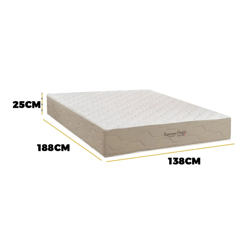 Desenvolvido para proporcionar uma experiência de repouso superior, o Colchão Supreme Casal com Molas Ensacadas 25x188x138cm Inovaflex combina o suporte individualizado do molejo ensacado com camadas de conforto que se moldam aos contornos do corpo, garantindo o alinhamento ideal da coluna durante toda a noite. Sua estrutura robusta e o acabamento em tecido de alta qualidade oferecem não apenas durabilidade excepcional, mas também um toque suave e sofisticado que eleva a estética do dormitório. Ideal para quem busca estabilidade e a ausência de ruídos ou transferência de movimento, o item transforma o quarto em um verdadeiro refúgio de bem-estar e sofisticação.