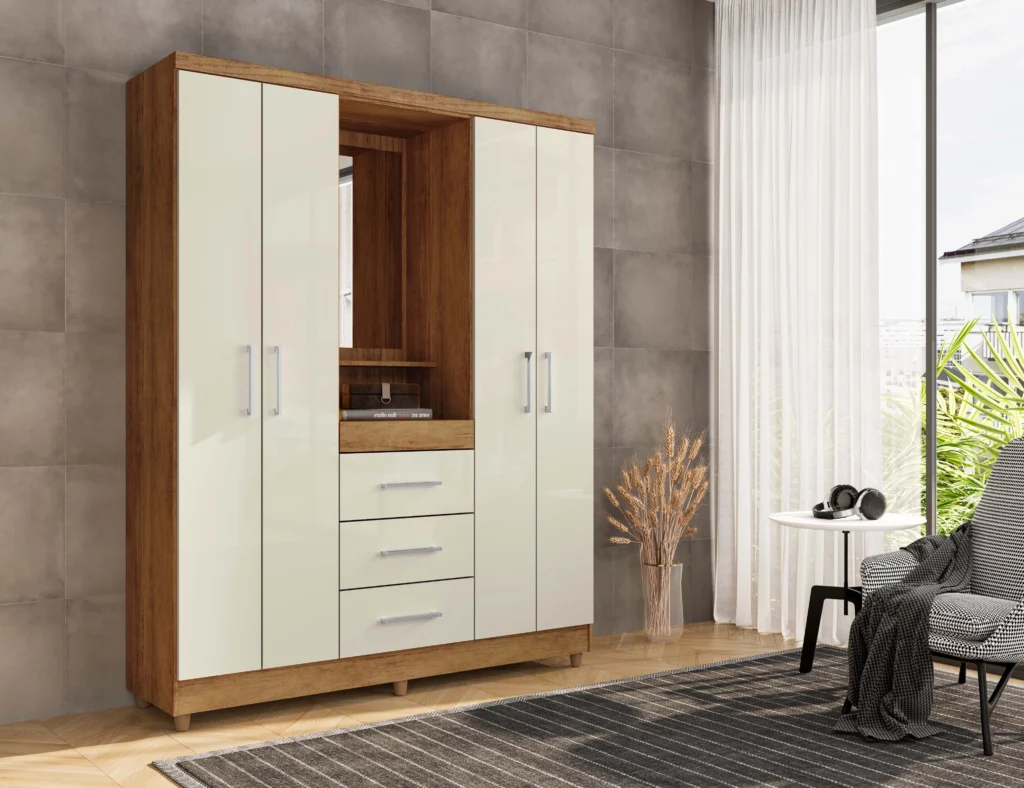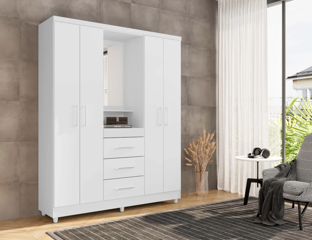 Com um design moderno e funcional, este guarda-roupa vai dar um toque de elegância ao seu espaço. As 4 portas e 3 gavetas oferecem amplo espaço para organizar suas roupas, sapatos, e acessórios, mantendo tudo bem arrumado e fácil de encontrar. Além disso, o espelho é perfeito para dar aquela conferida no visual antes de sair de casa.