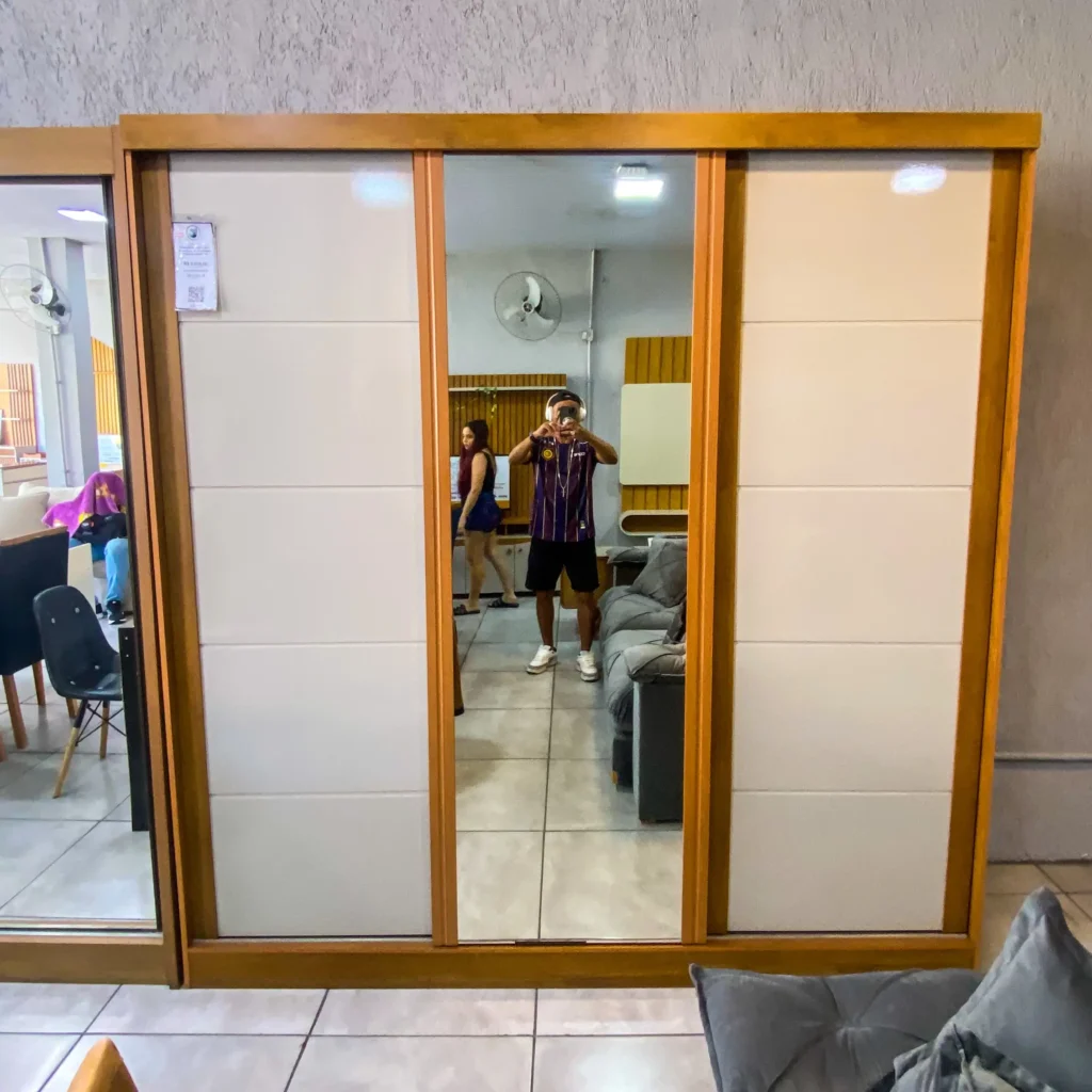 Imagine um Guarda Roupa em que você pode guardar todas as roupas do casal, objetos, malas, roupas de cama, sapatos e acessórios? Esse é o Guarda Roupa Capri Casal 3 Portas de Correr com Espelho Bianchi. Sofisticação e amplo espaço interno.