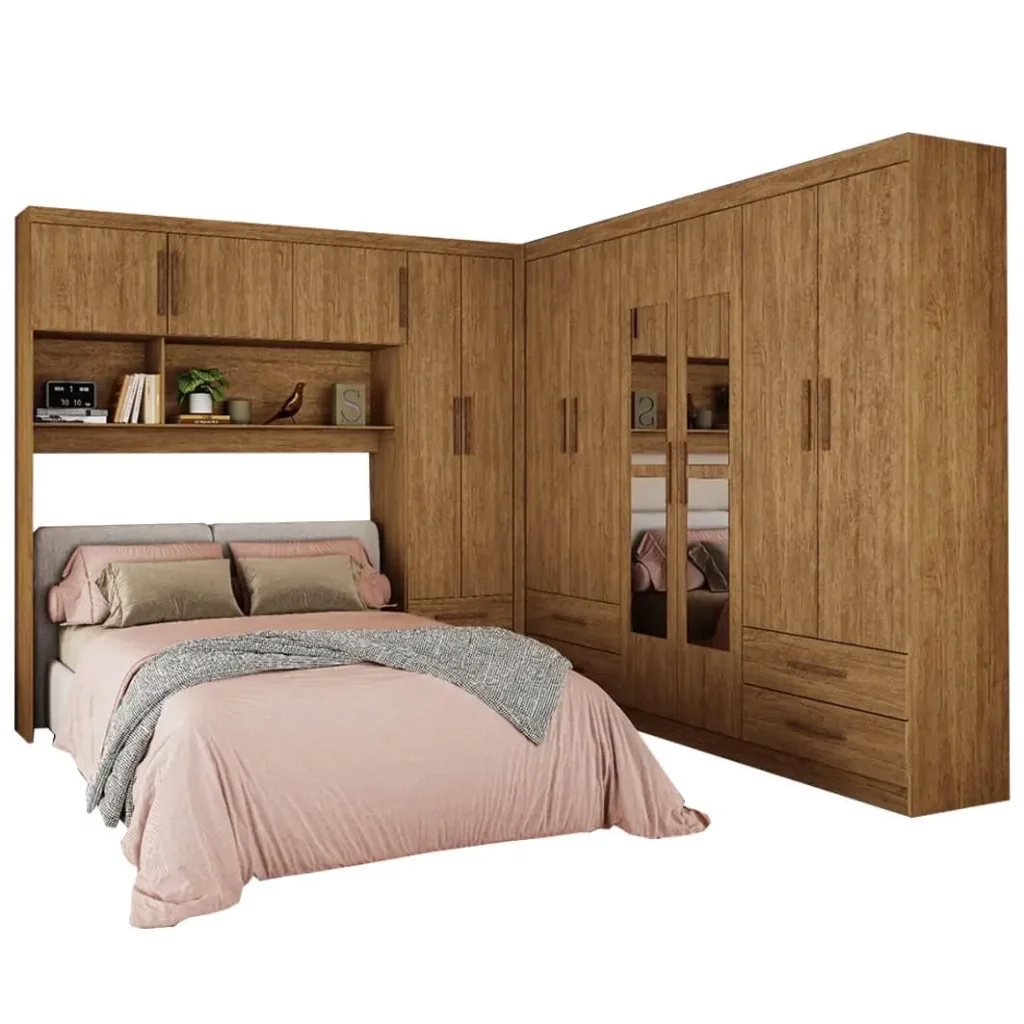 O conjunto é composto por um Guarda Roupa Modulado Carioca 5 Portas 2 Gavetas combinado com um Guarda Roupa Hercules com 6 Portas 4 Gavetas e Espelho. Ou seja: tamanho suficiente para guardar todas as roupas, sapatos e acessórios em um único lugar, este guarda roupa modulado será o herói do seu quarto!
