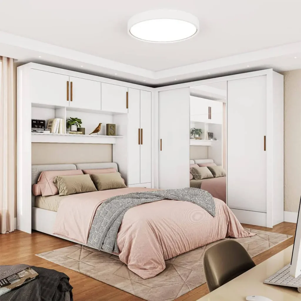 O conjunto é composto por um Guarda Roupa Modulado Carioca 5 Portas 2 Gavetas combinado com um Guarda Roupa Santiago Casal 3 Portas 3 Gavetas Carioca. Ou seja: tamanho suficiente para guardar todas as roupas, sapatos e acessórios em um único lugar, este guarda roupa modulado será o herói do seu quarto!