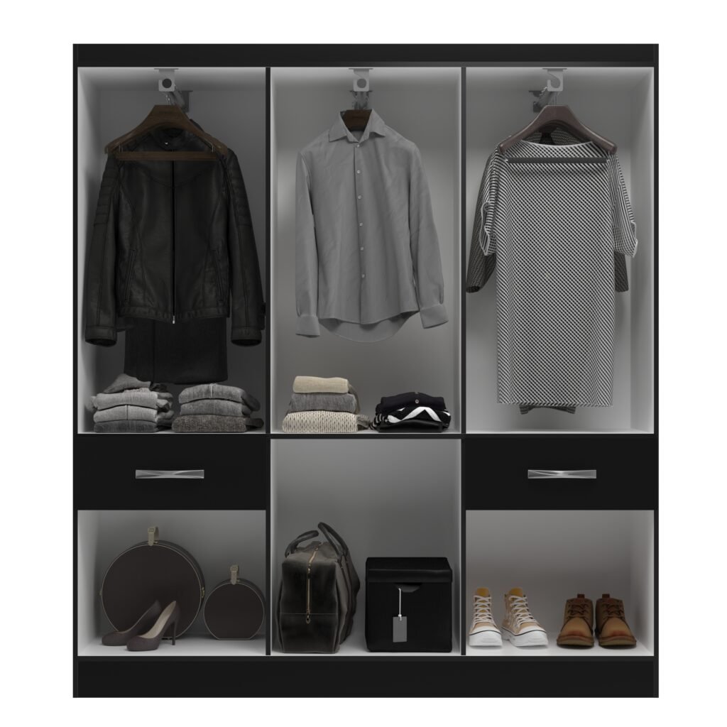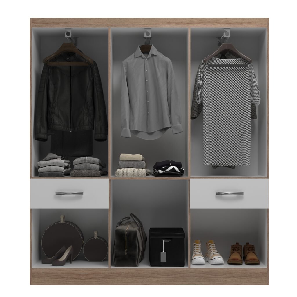 O design clean e contemporâneo deste guarda-roupa garante que ele se adapte facilmente a qualquer estilo de decoração, tornando-o uma adição versátil a qualquer espaço. As portas são práticas e economizam espaço, enquanto a gaveta adicional oferece espaço extra para pequenos itens.