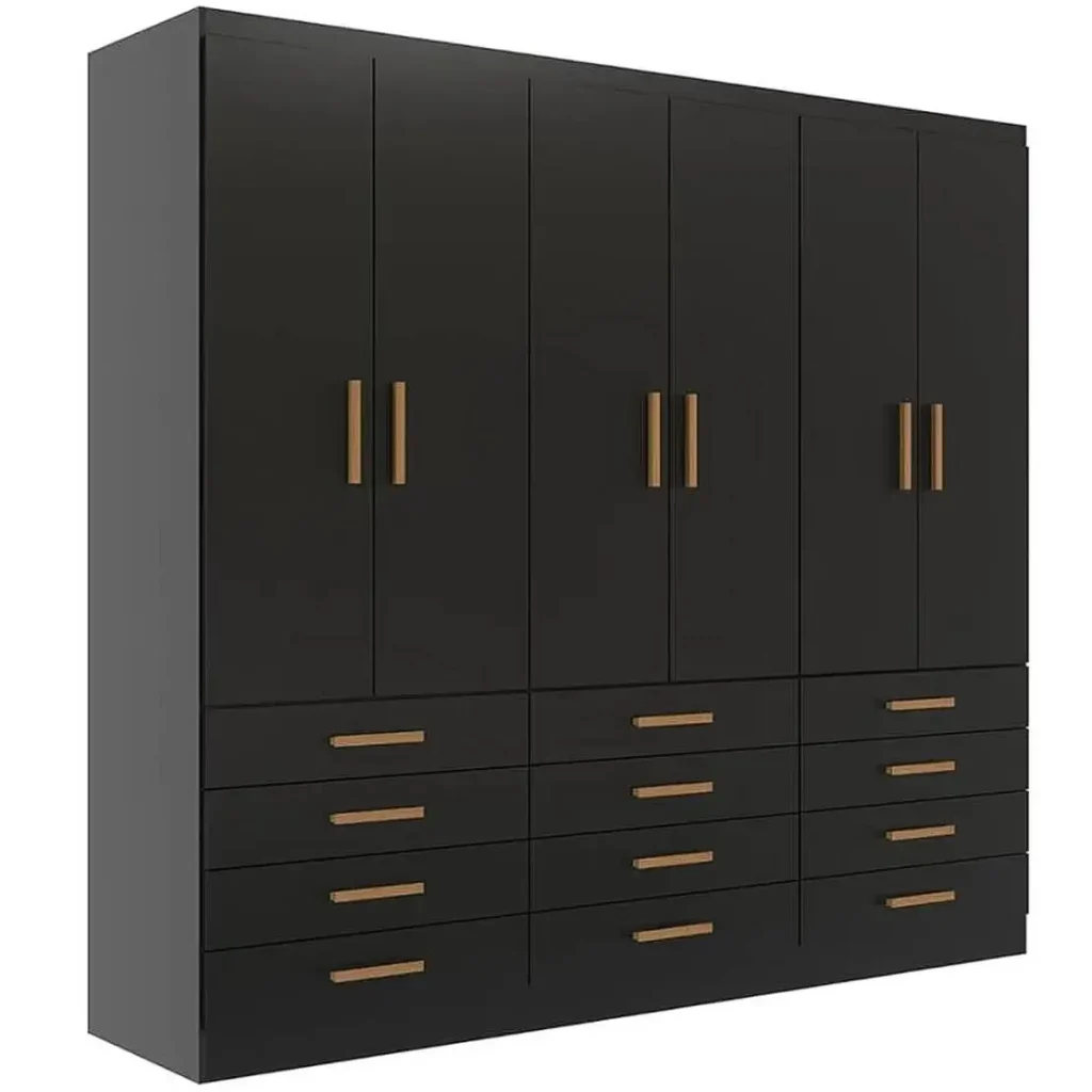 O Guarda Roupa New Monaco Casal 6 Portas 12 Gavetas Evidencia oferece amplo espaço de armazenamento, com 6 portas e 12 gavetas, proporcionando espaço mais do que suficiente para organizar todas as suas roupas, acessórios e itens pessoais de maneira eficiente. Nunca mais vai faltar espaço para guardar suas coisas!