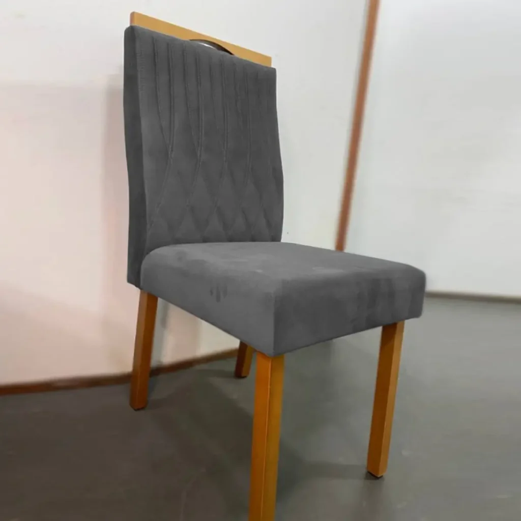 O estofamento em tecido veludo proporciona uma experiência de toque aveludado e macio, além de conferir um visual luxuoso ao móvel. A estrutura de alta qualidade garante durabilidade e estabilidade, enquanto o assento e o encosto estofados oferecem o máximo de conforto para longas refeições ou momentos de relaxamento.