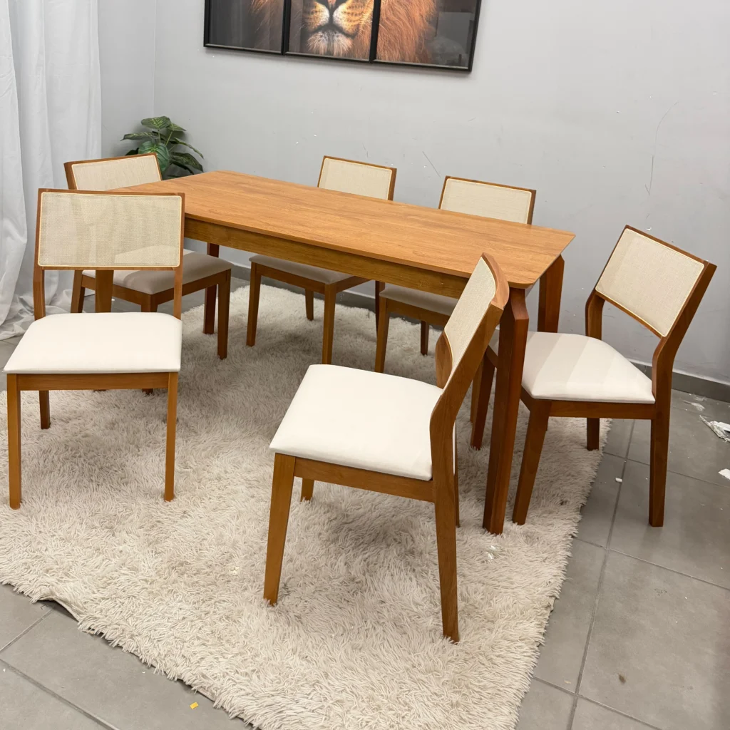 O Conjunto Mesa de Jantar Alegra 180x90cm sem Vidro e 6 Cadeiras Oiti em Linho Madeira JCM é a peça central perfeita para a sua sala de jantar, combinando funcionalidade e elegância em um design harmonioso. A Mesa Alegra possui uma base robusta em madeira, oferecendo durabilidade e um toque moderno que realça a decoração. Complementando a mesa, as 6 Cadeiras Oiti são revestidas em tecido de alta qualidade, proporcionando um assento macio e confortável, ideal para longas refeições e encontros sociais.