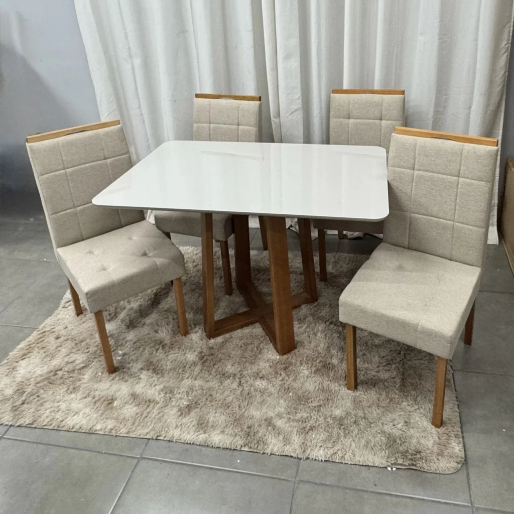 | Modelo | Mesa de Jantar Bali 120x90cm com Vidro e 4 Cadeiras Giulia em Linho Estofadas Minas Plac |