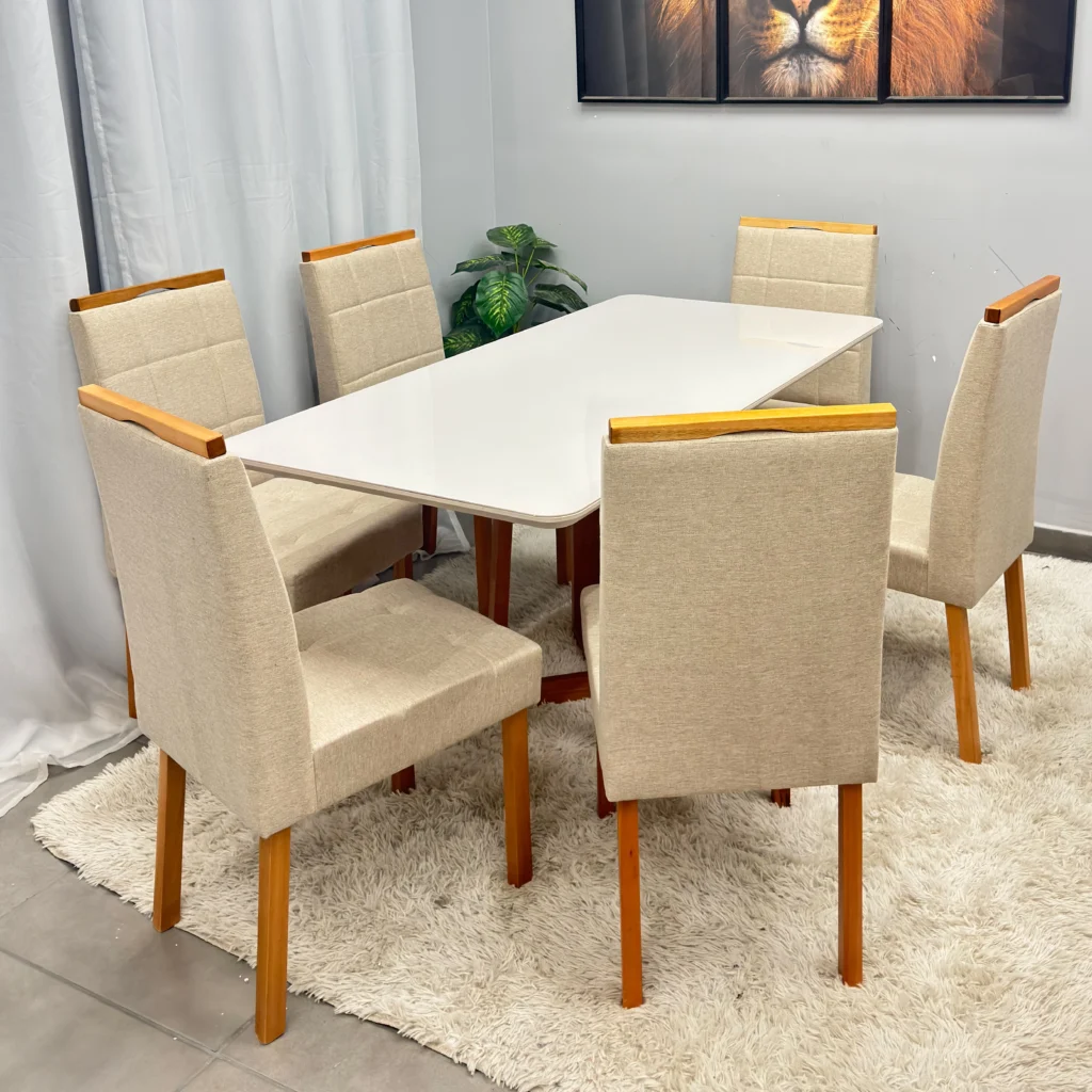 | Modelo | Mesa de Jantar Bali 160x90cm com Vidro e 6 Cadeiras Giulia em Linho Estofadas Minas Plac |
