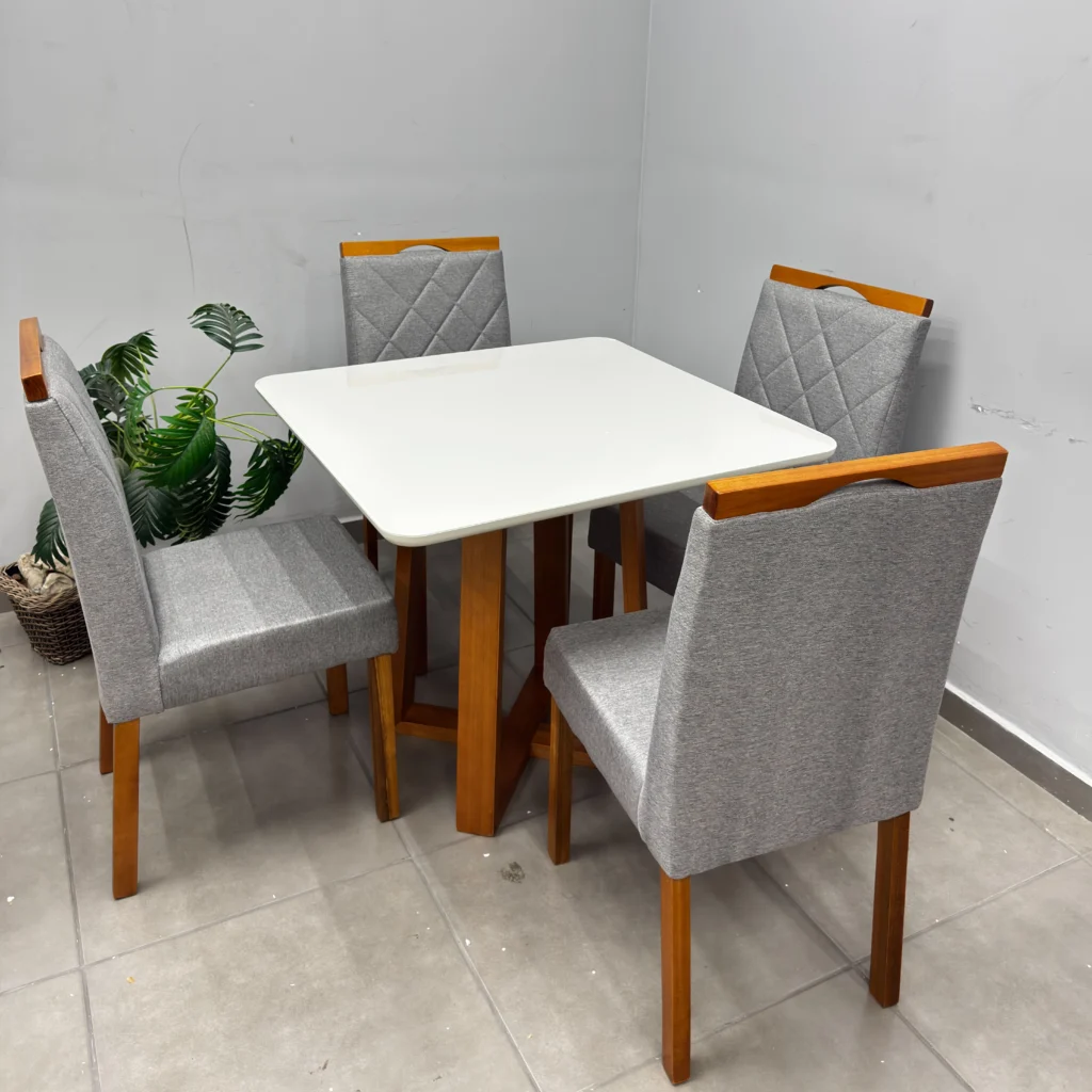 | Modelo | Mesa de Jantar Bali 90x90cm com Vidro e 4 Cadeiras California em Veludo Estofadas Minas Plac |