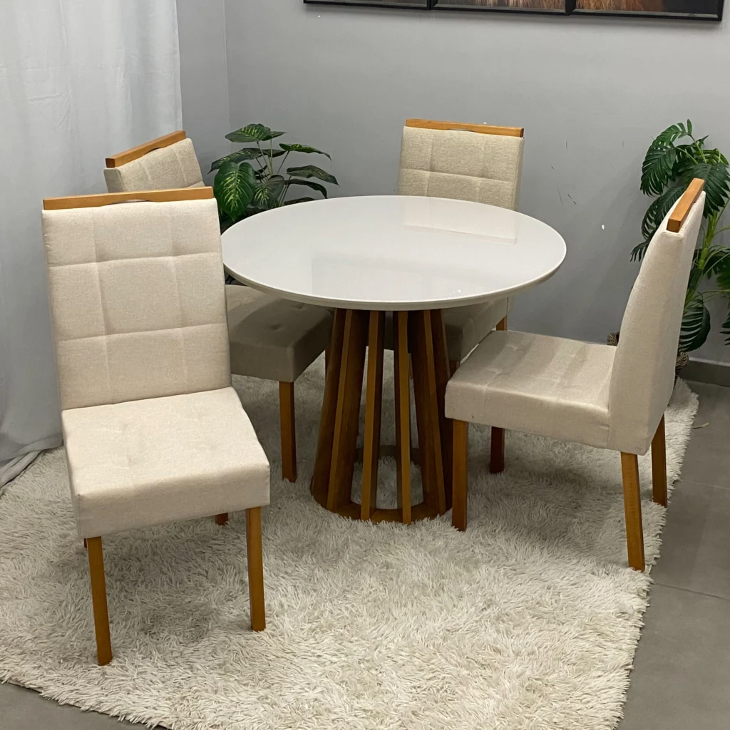 | Modelo | Mesa de Jantar Berlim 100cm Redonda com Vidro e 4 Cadeiras Giulia em Linho |