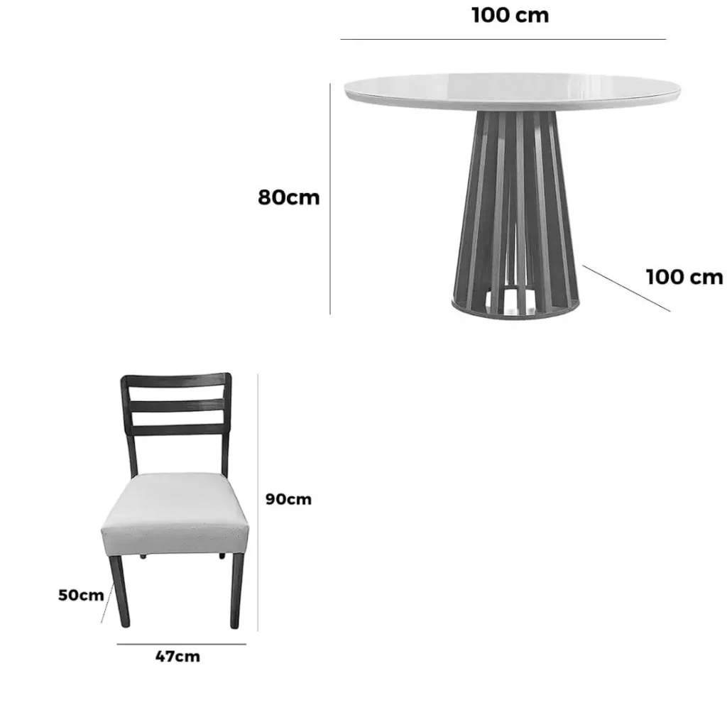 | Modelo | Mesa de Jantar Berlim 100cm Redonda com Vidro e 4 Cadeiras Turquia em Linho |