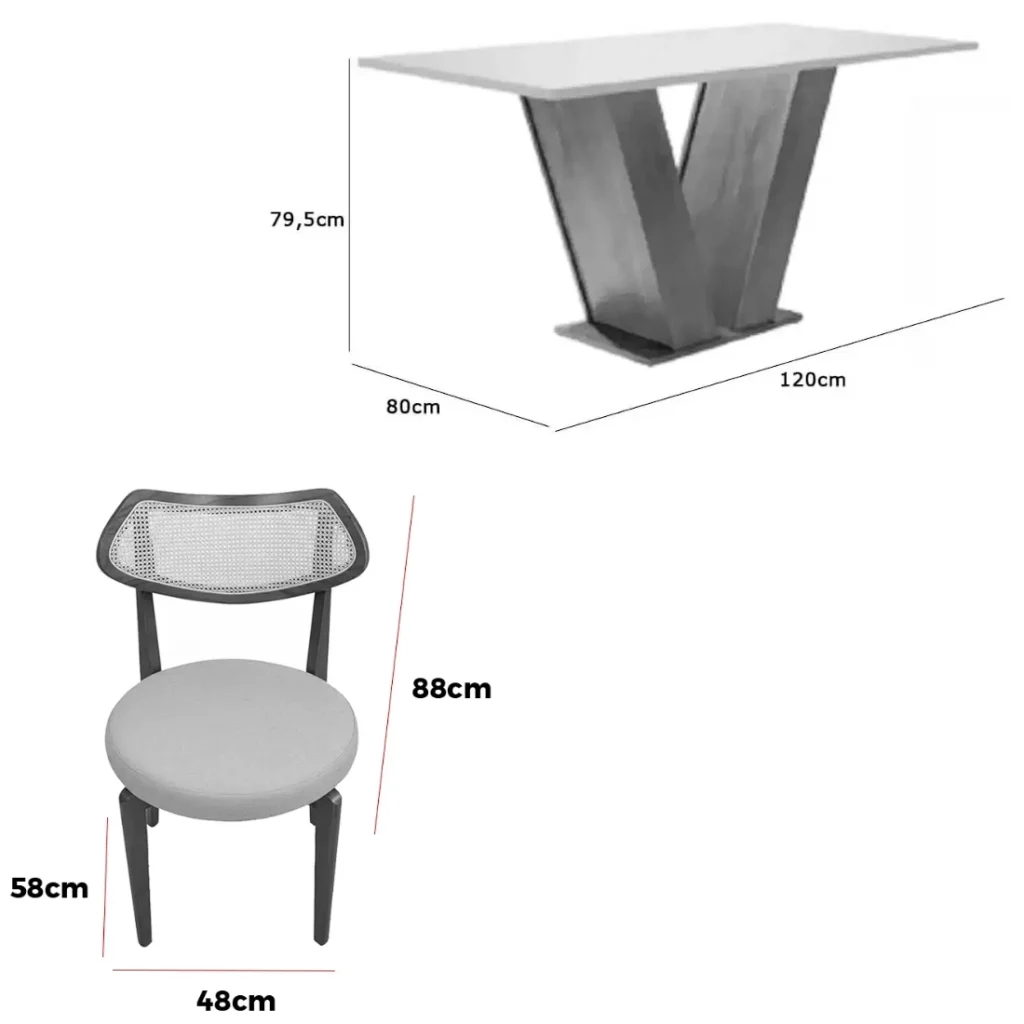 O conjunto acompanha 4 cadeiras, projetadas para proporcionar uma experiência de máximo conforto. Combinando robustez e sofisticação, este conjunto apresenta um acabamento refinado que harmoniza com diversos estilos de decoração, do clássico ao contemporâneo. É a peça central que faltava para renovar seu ambiente com qualidade superior e um visual impecável que impressiona as visitas.