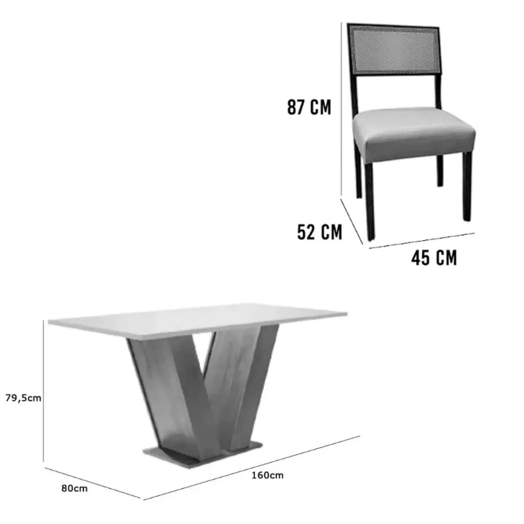| Modelo | Mesa de Jantar Classic 160x80cm com Vidro e 6 Cadeiras Grecia em Linho |
