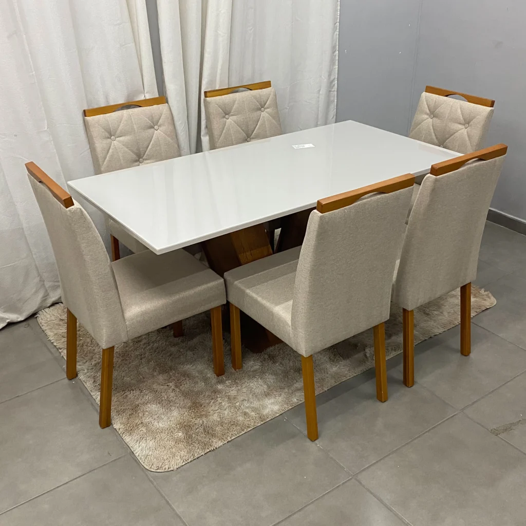 O conjunto acompanha 6 cadeiras, projetadas para proporcionar uma experiência de máximo conforto. Combinando robustez e sofisticação, este conjunto apresenta um acabamento refinado que harmoniza com diversos estilos de decoração, do clássico ao contemporâneo. É a peça central que faltava para renovar seu ambiente com qualidade superior e um visual impecável que impressiona as visitas.