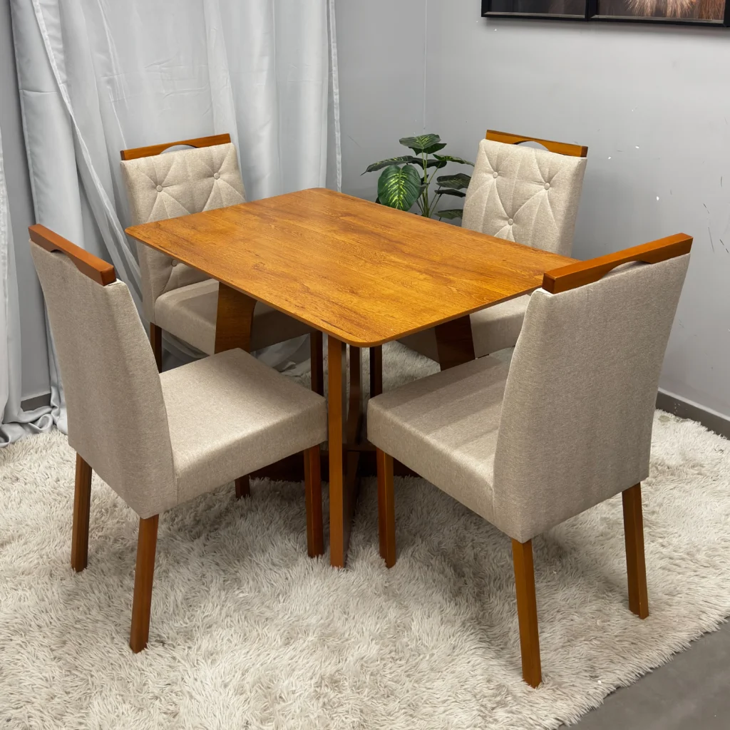| Modelo | Mesa de Jantar Dubai Flex 120x80cm Sem Vidro e 4 Cadeiras Jasmim em Linho |