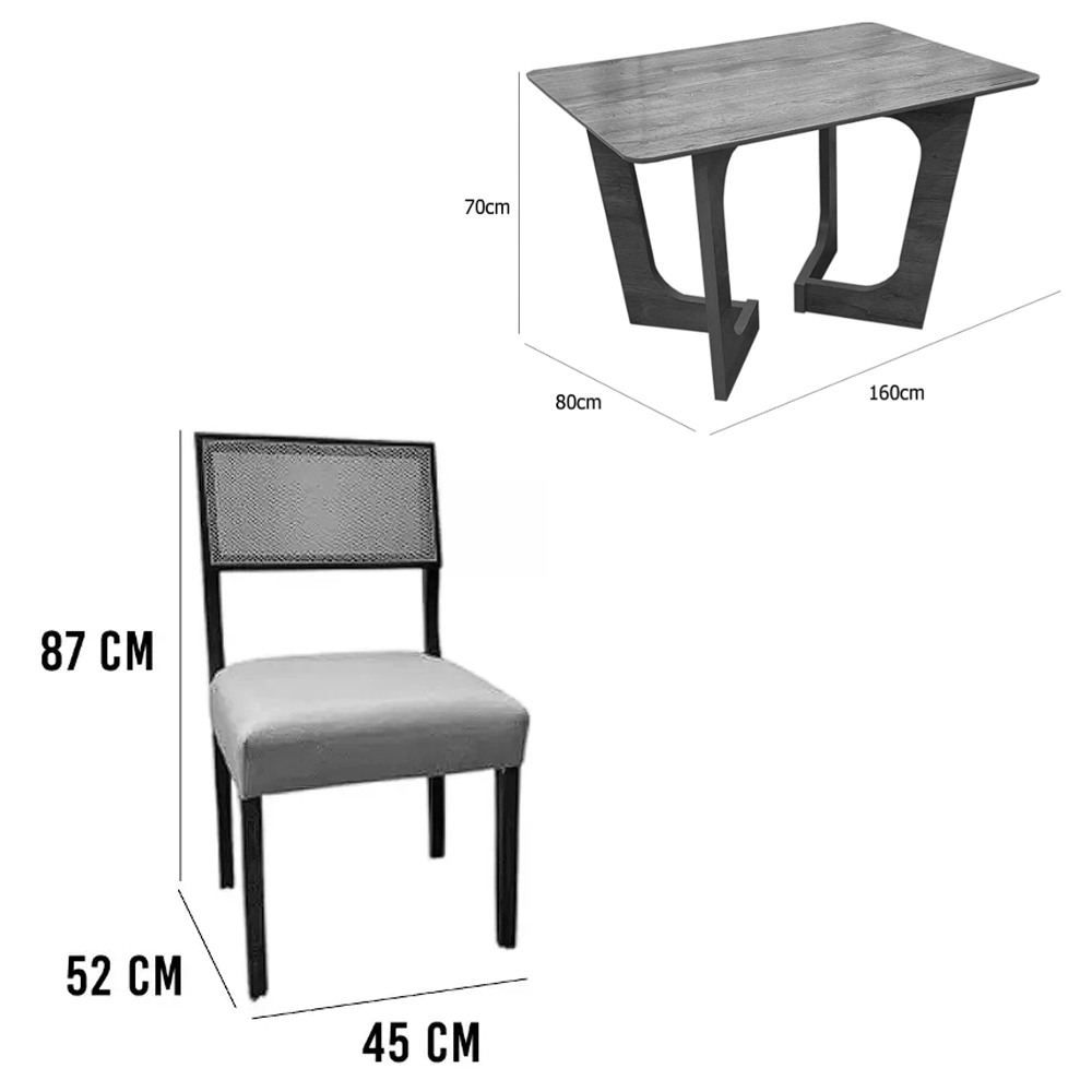 | Modelo | Mesa de Jantar Dubai Flex 160x80cm Sem Vidro e 6 Cadeiras Grecia em Linho |