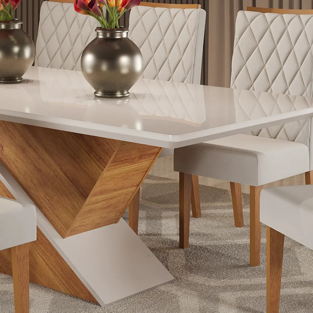 A Mesa Galak se destaca pela sua versatilidade, adaptando-se a diversos estilos de decoração, do clássico ao contemporâneo. Suas linhas limpas e acabamento refinado complementam qualquer ambiente, adicionando um toque de modernidade sem perder a elegância atemporal. A superfície ampla oferece espaço de sobra para dispor os pratos, bebidas e decorações, tornando cada refeição um verdadeiro banquete visual. É a peça chave para quem busca funcionalidade e beleza em um só móvel.