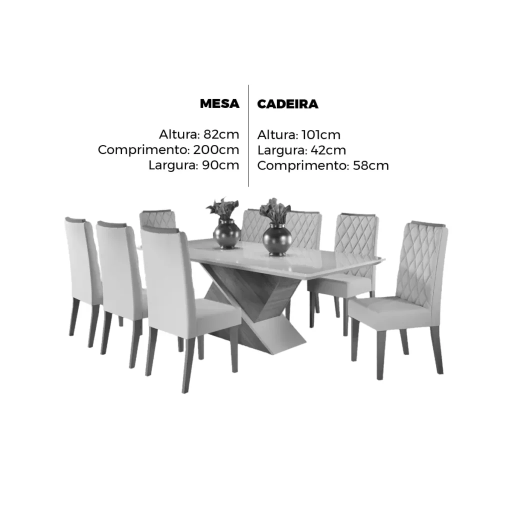 A Mesa de Jantar Galak 200x90cm com 8 Cadeiras Iza Viero convida a momentos inesquecíveis, transformando refeições em celebrações. Com seu design elegante e dimensões generosas, acomoda confortavelmente a família e amigos, criando um ambiente perfeito para conversas e risadas. A robustez da mesa, aliada à delicadeza das cadeiras, garante durabilidade e um toque de sofisticação ao seu lar. É o centro das atenções, onde memórias são construídas e laços são fortalecidos a cada encontro.