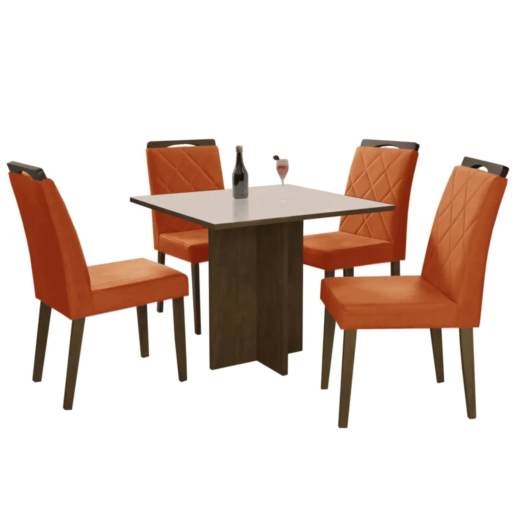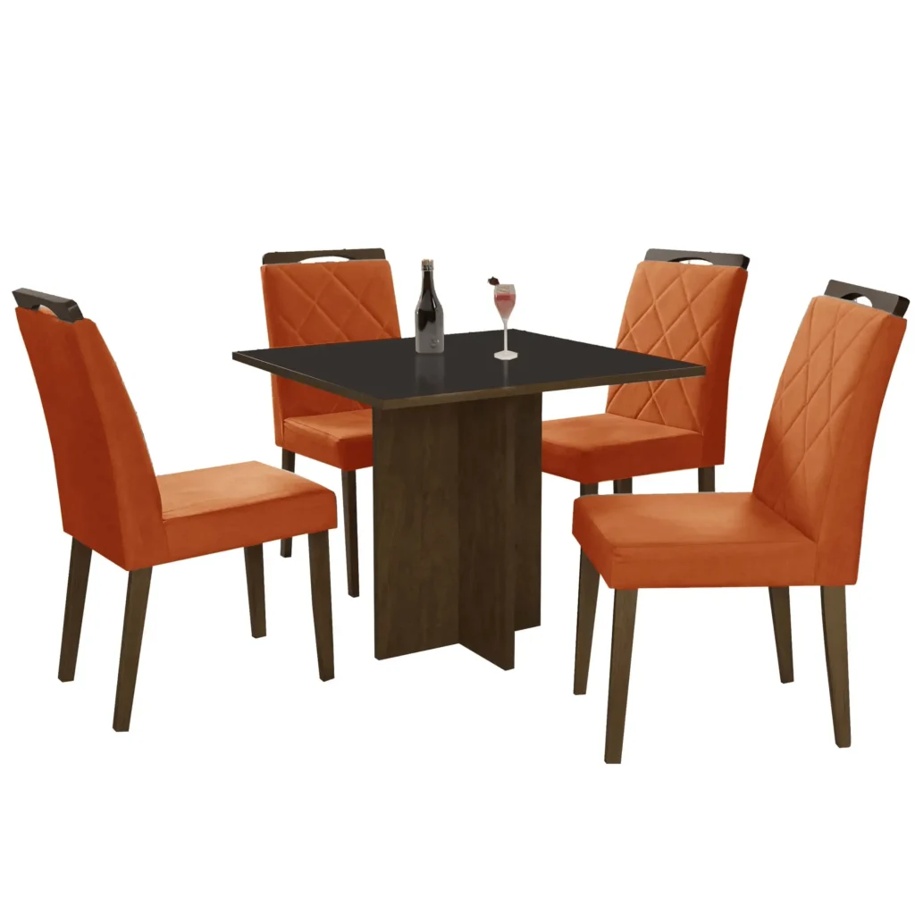 Além de sua beleza, esse conjunto se destaca pela sua funcionalidade e praticidade. A mesa possui um tamanho ideal para acomodar confortavelmente até 4 pessoas, proporcionando momentos agradáveis e descontraídos com amigos e familiares. As cadeiras, por sua vez, são extremamente confortáveis e possuem um design que se encaixa perfeitamente à mesa, otimizando o espaço e garantindo o bem-estar de todos.