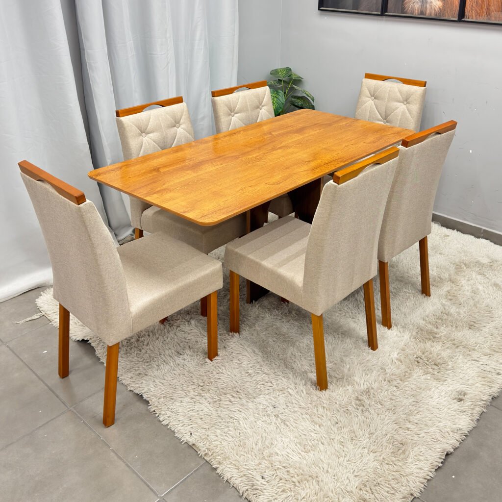 Um dos grandes diferenciais deste modelo é a opção de dupla montagem dos pés, que permite escolher a forma de instalação que melhor se adapta ao seu espaço e estilo de decoração. Versátil, resistente e elegante, este conjunto é a escolha ideal para quem busca aliar beleza e funcionalidade em momentos à mesa.