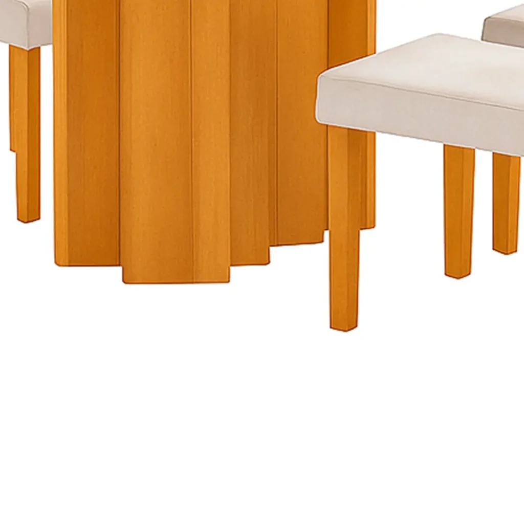 Seu visual clean se adapta facilmente a diferentes estilos de decoração, do minimalista ao mais clássico. A estrutura em madeira garante durabilidade e resistência por muitos anos de uso. Perfeita para refeições em família, jantares especiais ou para complementar a decoração do seu lar com bom gosto.