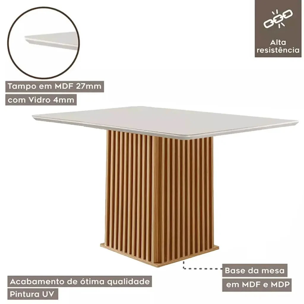 Feita com materiais de alta qualidade, a Mesa Riviera é durável e resistente, perfeita para as refeições em família ou para receber os amigos. O tampo de vidro confere um toque sofisticado, além de facilitar a limpeza do móvel, deixando a sua vida muito mais prática.