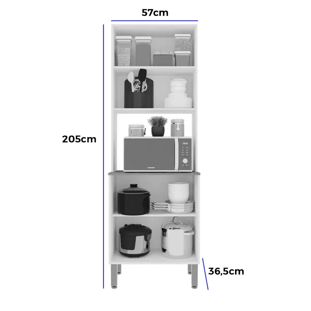 O Paneleiro New Valencia 2 Portas Salleto é uma peça essencial para a organização da sua cozinha, oferecendo um design moderno de torre quente, ideal para acomodar micro-ondas ou forno elétrico em um nicho dedicado. Fabricado com materiais de alta qualidade, ele conta com duas portas para armazenamento interno, prateleiras e pés reguláveis, combinando funcionalidade e estilo para otimizar o espaço e complementar a decoração do ambiente.