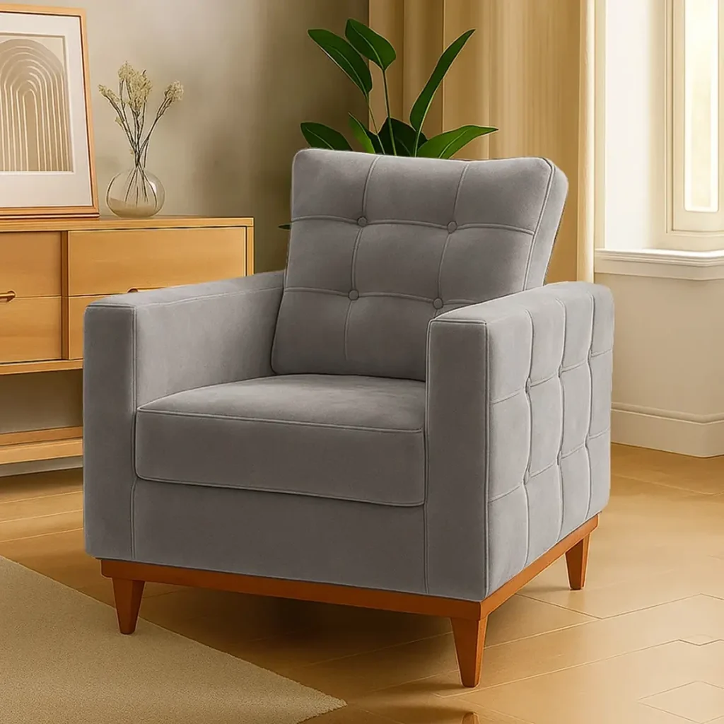 Procurando um toque de sofisticação e conforto para seu lar? A Poltrona California em Veludo com Almofada Solta RR Estofados é a escolha perfeita. Esta peça exala elegância com seu revestimento, proporcionando um toque macio e um brilho sutil que eleva qualquer ambiente. O design clássico e atemporal do modelo se integra harmoniosamente a diversas decorações, desde as mais modernas até as mais tradicionais.