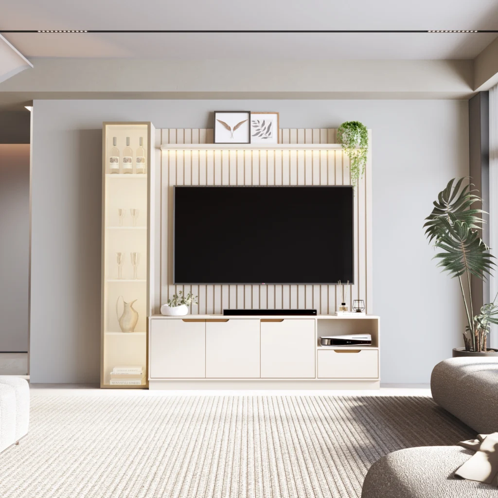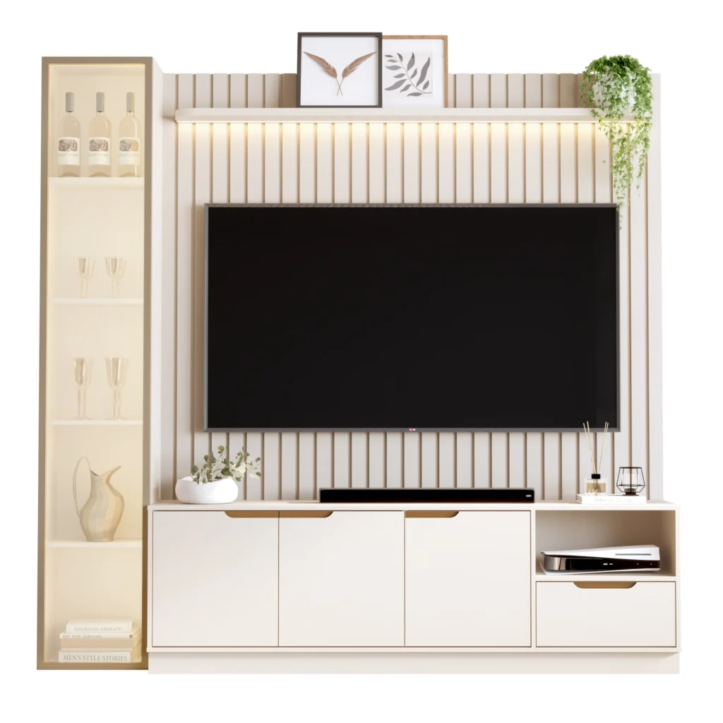 O Rack com Painel Tucuma Ripado 180cm com Prateleira 1 Torre e LED 4 Portas 1 Gaveta JB Bechara é a solução definitiva para quem busca unir sofisticação e funcionalidade na organização da sala de estar. Seu design moderno prioriza a otimização do espaço, oferecendo amplos compartimentos internos e superfícies estratégicas que acomodam desde eletrônicos até itens decorativos com total elegância. Fabricado com materiais de alta resistência e acabamento impecável, este móvel transforma o ambiente em um verdadeiro centro de entretenimento, adaptando-se perfeitamente a diferentes estilos de decoração e proporcionando um visual clean e moderno para o seu lar.