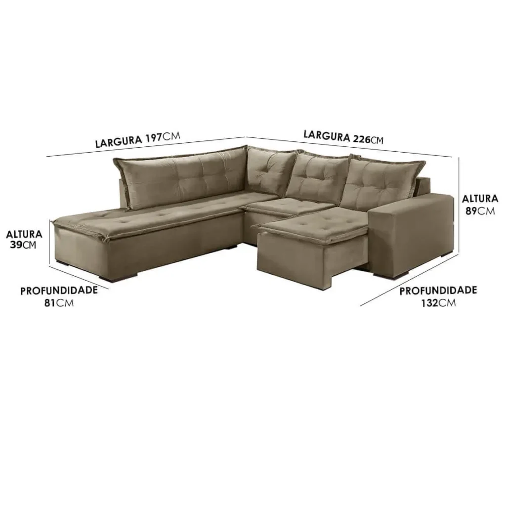A sua sala de estar só está completa na presença de um bom sofá e nada mais gostoso do que receber a família ou curtir os seus momentos de descanso junto com o Sofá de Canto 5 Lugares Retrátil Denver Tecido Suede 197cm x 226cm! Pensado para quem quer aliar bom gosto + uma estrutura reforçada para o uso diário, a peça tem madeira eucalipto na composição e revestimento de toque agradável com o corpo para garantir que a receptividade seja plena. Já o visual elegante de coloração tradicional a esse tipo de móvel fecha com chave de ouro os benefícios que ele oferece para o seu doce lar.