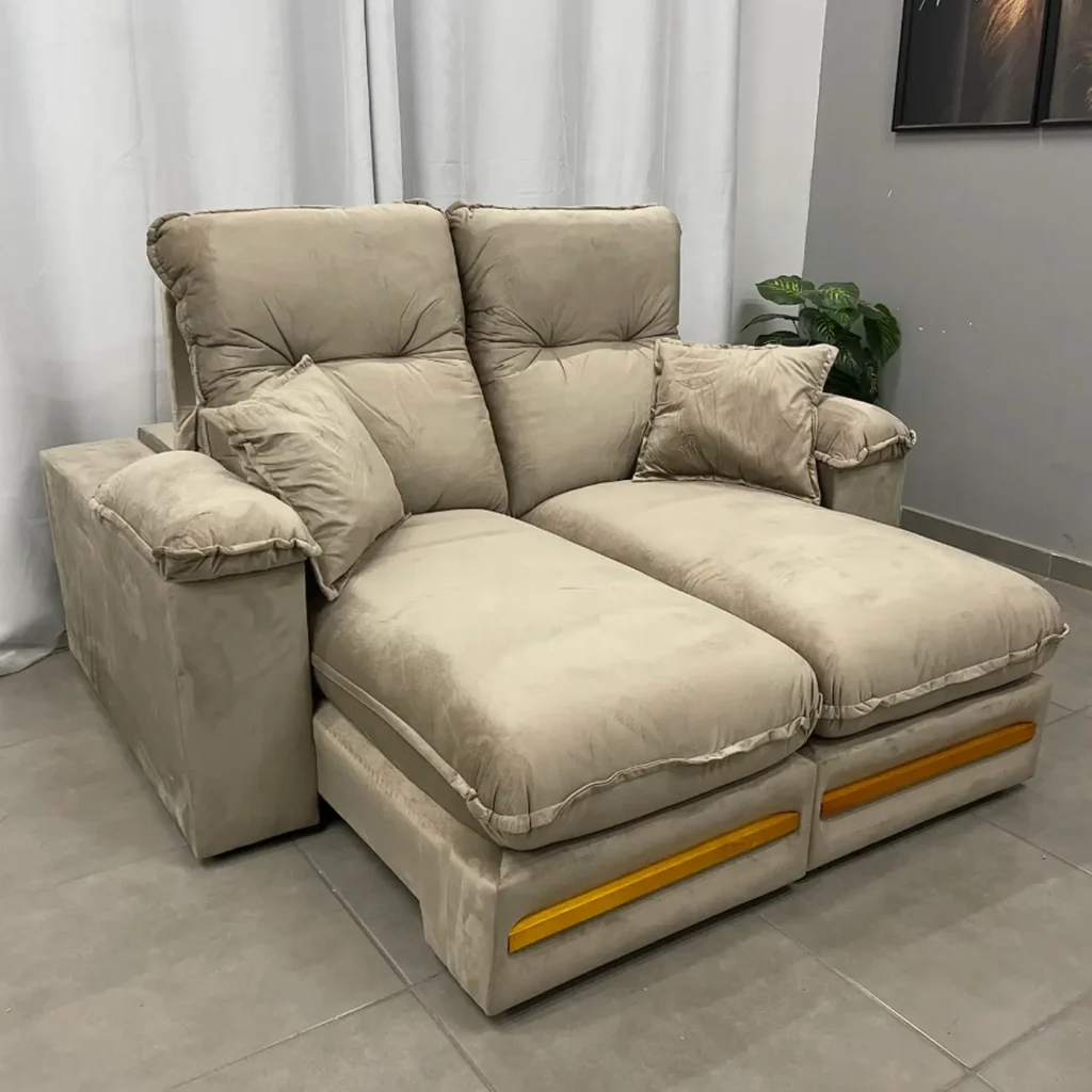 O destaque fica por conta dos seus mecanismos retrátil e reclinável, que permitem ajustar o assento e o encosto para a posição que você preferir, transformando-o em uma verdadeira chaise longue. Perfeito para maratonar séries, ler um bom livro ou simplesmente tirar uma soneca.