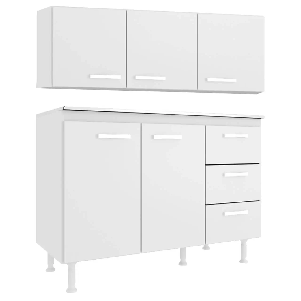 Armário Aéreo com Balcão Evidencia 5 Portas 3 Gavetas Evidencia