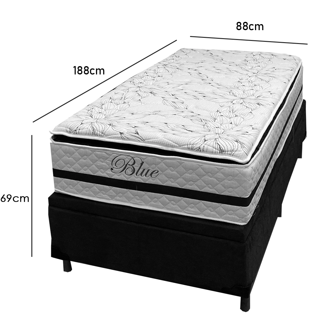 Base Baú em Corino com Colchão Blue Solteiro Molas Pocket e Pillow Top 69x188x88cm Paropas