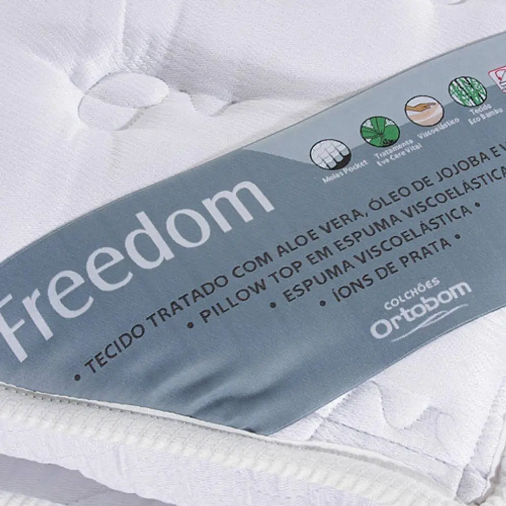 O modelo Colchão Freedom King Size de Molas Ensacadas com Pillow Top 32x198x186cm Ortobom tem revestimento em cor clara e é produzido com molas ensacadas para oferecer um maior relaxamento ao corpo todo. Além disso, conta com a camada extra do pillowtop – uma faixa macia que garante mais aconchego à peça – enquanto o sistema no turn acaba com a necessidade de virá-lo de tempos em tempos. Bom demais né? Seu sono agradece, afinal acordar todos os dias com disposição para a rotina é um desafio e tanto, mas com a ajuda do colchão certo essa tarefa pode ser muito mais fácil.