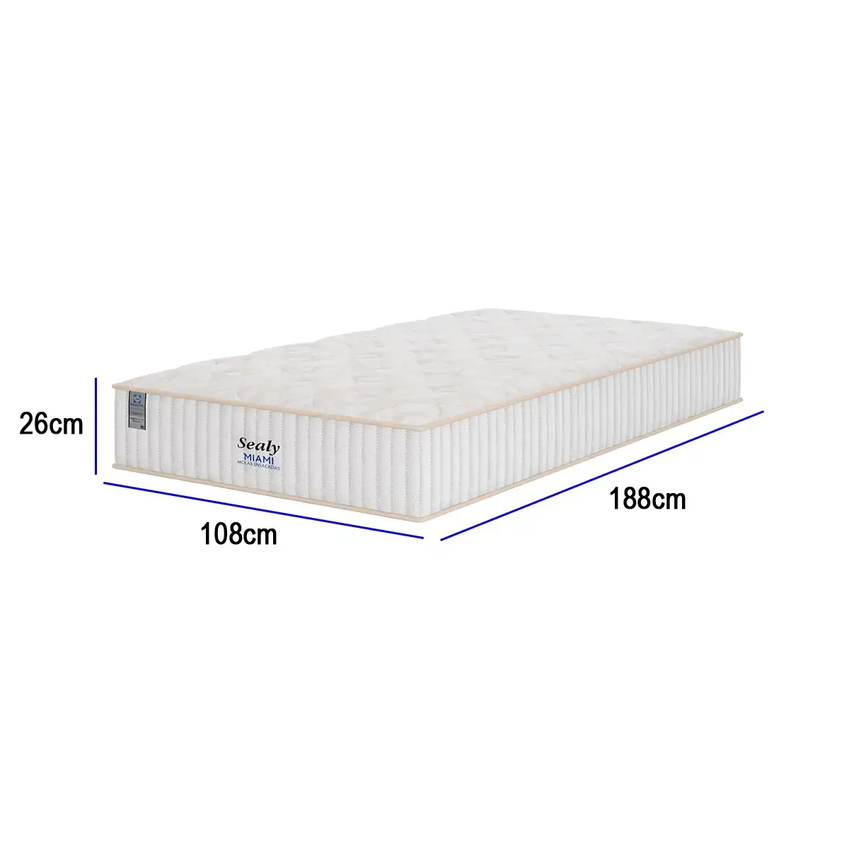 Colchão Miami Solteirão Com Molas Ensacadas 26x188x108 Sealy
