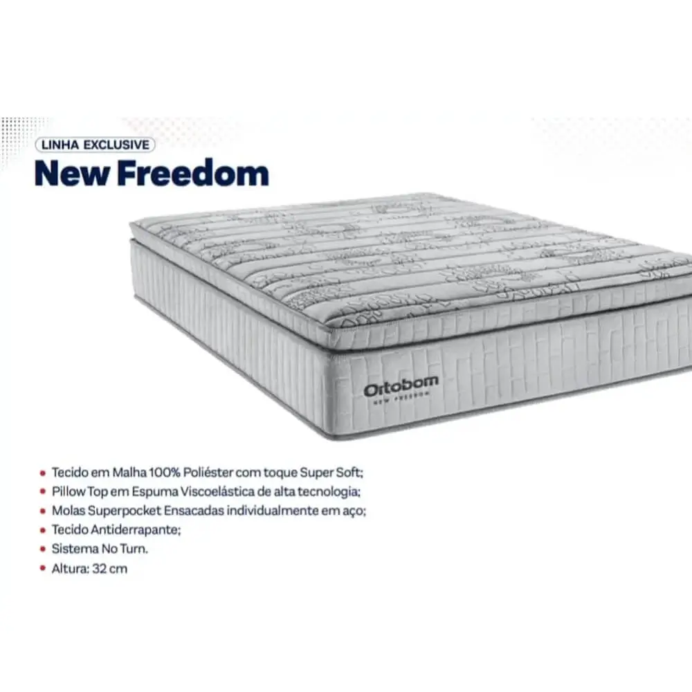Colchão New Freedom Queen Molas Ensacadas com Pillow Top 32x198x158cm Ortobom