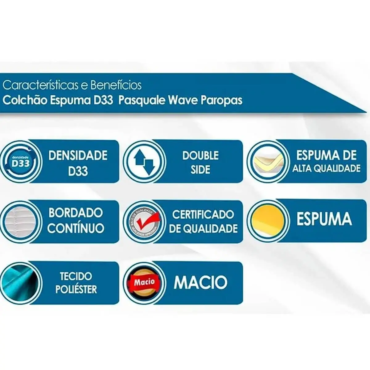| Modelo | Colchão Pasquale Wave 78×188 D33 |
