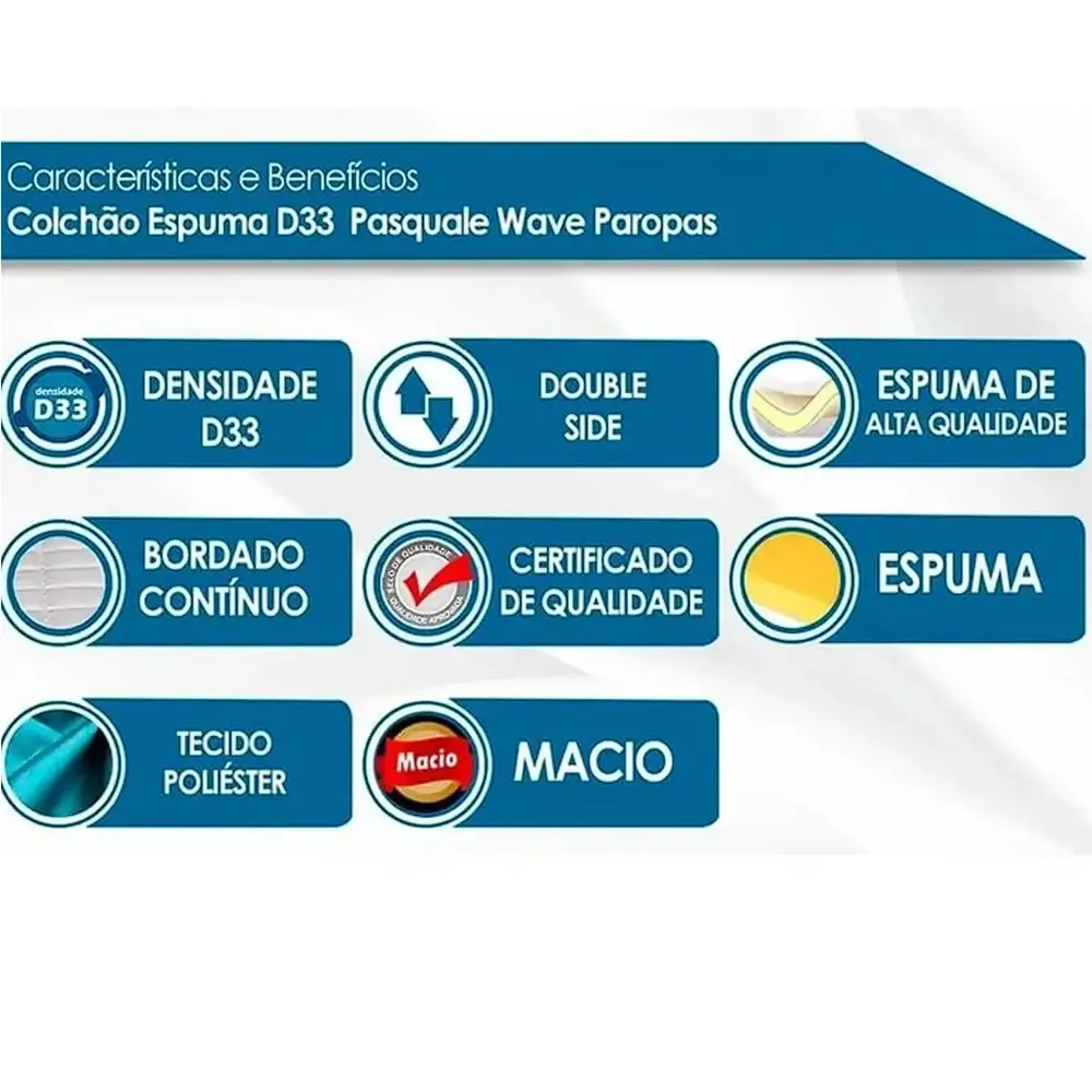 Mas espere, ainda tem mais! O Colchão Pasquale Wave D33 também é fabricado pela renomada Paropas, uma marca conhecida por sua dedicação à qualidade e conforto. Se preocupar com a qualidade do sono nunca mais!
