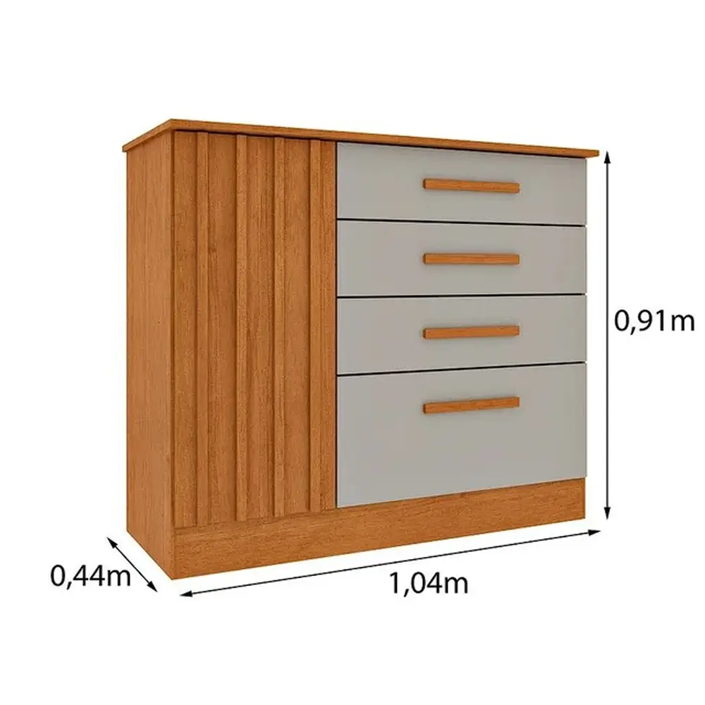 Cômoda Guarani Ripado 4 Gavetas 1 Porta Tcil