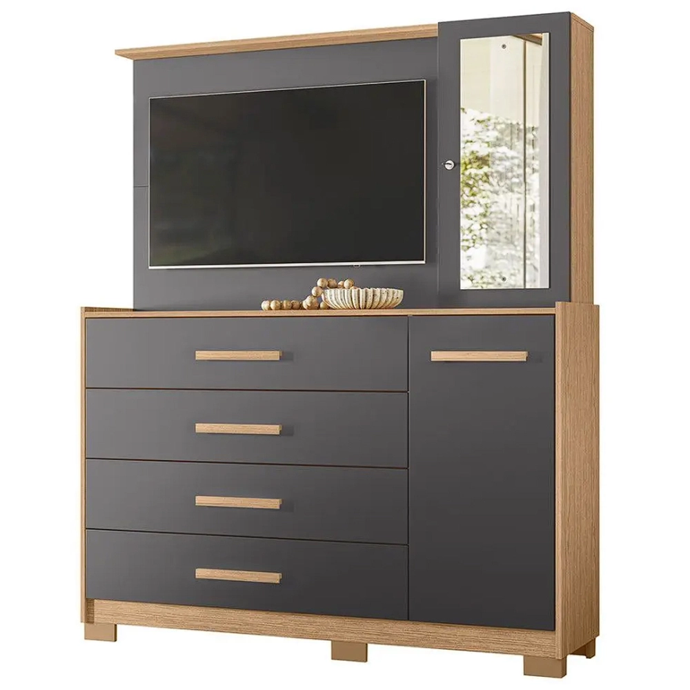 Cômoda Ilhabela com Painel para TV 4 Gavetas 2 Portas e Espelho Albatroz